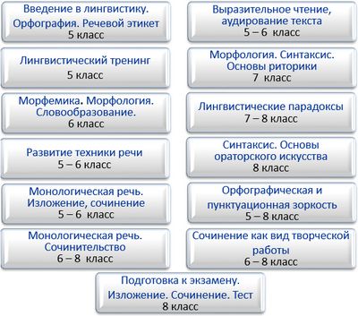 Текст Спецкурс предполагает развитие техники речи, обучение сочинительству, тренинг навыков сочинения текстов различных типов и стилей речи. Комплектование групп осуществляется в соответствии с возрастом учащегося.