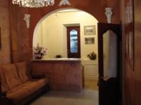 Ощущение замка укрепляется при входе в здание. С улицы вы попадаете в просторный холл комплекса: высокие потолки ,белые стены, лепнина, картины, мрамор. Приветливая девушка - администратор встречает Вас улыбкой. Здесь все наполнено атмосферой средневекового замка и создано для удобства постояльцев. Находясь всего в семи минутах езды на автомобиле от центральной улицы проспекта К.Маркса, и пяти остановок на маршрутном такси, комплекс защищен от автомобильных пробок, гари, суеты, что позволяет в любое время суток в течение 20 минут попасть в аэропорт и 10 минут на федеральную трассу.